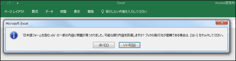 ・ 日本語のVBAモジュールが含まれるOfficeのファイル(Excel、Accessなど)を開く時にエラーが発生する。