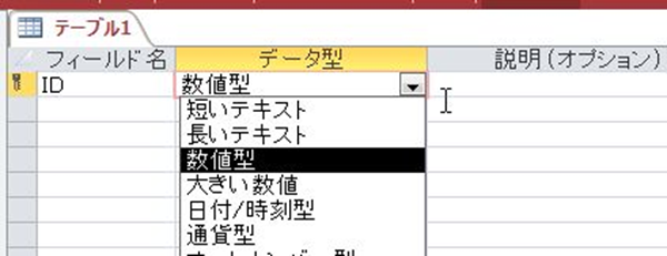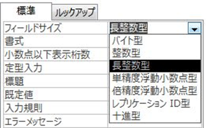 Accessで金額以外の数値データを扱う場合、フィールドのデータ型として[数値型]を選択したうえで、フィールドプロパティでフィールドのサイズを設定します。それぞれ扱うデータのサイズに応じて、バイト型、整数型、長整数型、単精度浮動小数点型、倍精度浮動小数点型、レプリケーションID型、十進型があります。Acess2016以降で、数値型に加えて、大きい数値型というデータ型がサポートされるようになりました。