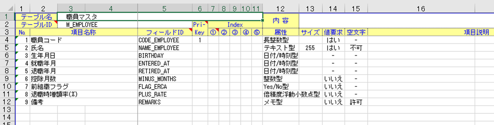 Excel VBAなどを応用して、一般的なテーブル定義書のフォーマットでドキュメントを自動作成してくれるサンプルコードはないかなと思って検索したら、ありました。