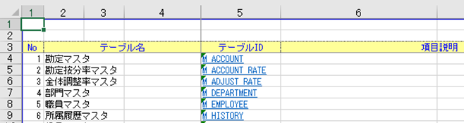 作成済みのAccessテーブル定義内容をワークシート上に書き出します。