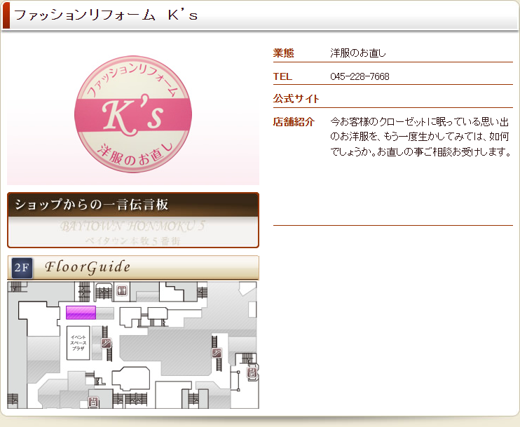 【閉店】(2F)ファッションリフォーム K’s